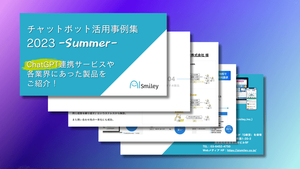 AIsmileyの担当より「チャットボット活用事例集2023-Summer-」をメールにて送付させていただきます。