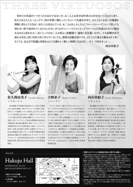 『三人のヴィルトーゾ 佐久間由美子・吉野直子・向山佳絵子』~フルート、ハープ、チェロ~