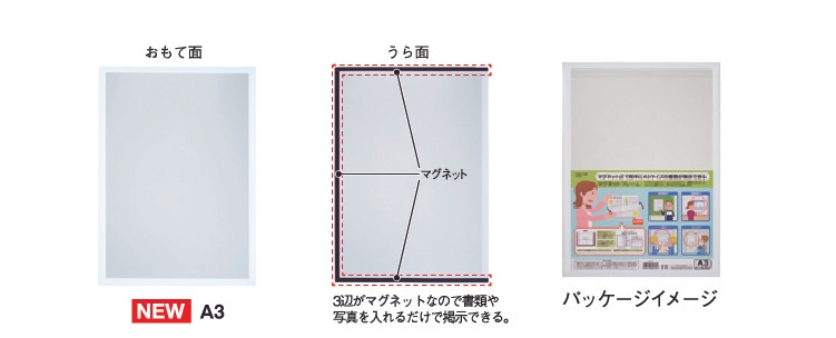 株式会社LIHIT LAB.(本社:大阪市中央区農人橋1-1-22 代表取締役社長:田中宏和)は、2025年9月初旬より、マグネット付き収納商品「マグネットフレーム」に新ラインナップとして、既存A4サイズの追加としてA3サイズを発売いたします(1品番1SKU)。A3サイズなので設計図面など大きな書類を掲示できます。また、最近の学校の掲示板において、従来の画鋲を使わずに、ホワイトボードに貼り付けて掲示する方法に切り替わっているため、マグネットを使った掲示の需要にお応えできる商品です。