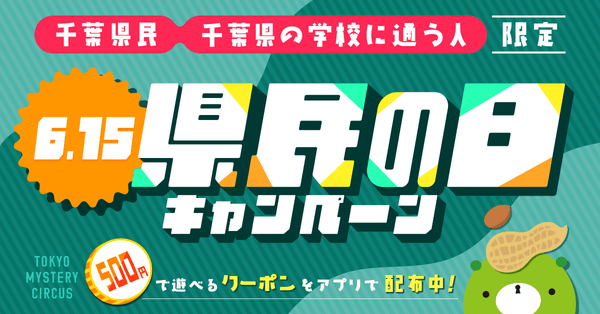 合同会社TOKYO MYSTERY CIRCUS(所在地:東京都新宿区、代表社員:加藤隆生)は、世界初・国内最大の“謎”のテーマパーク「TOKYO MYSTERY CIRCUS(以下、東京ミステリーサーカス)」にて、2025年6月15日(日)の「千葉県民の日」にあわせ、千葉県在住または在学の方を対象に、対象イベントが500円で遊べるクーポンを公式アプリで配信いたします。
