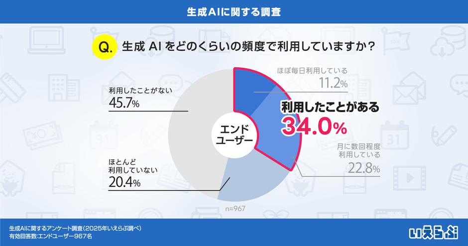 エンドユーザーの34.0%が生成AIを利用!AIエージェント活用は5.3%|いえらぶ調べ