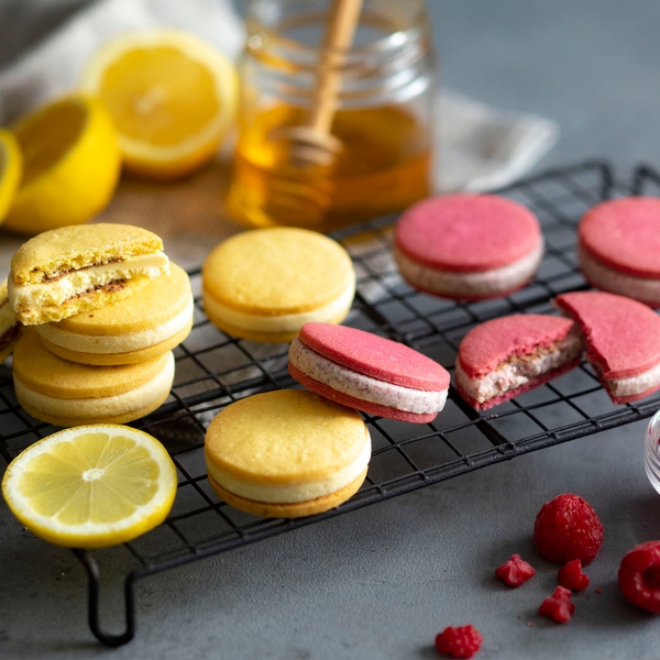 ハニーレモン:砂糖漬けレモンとパウダーを練り込んだサブレにはつみつとレモンの焼きショコラをサンド。