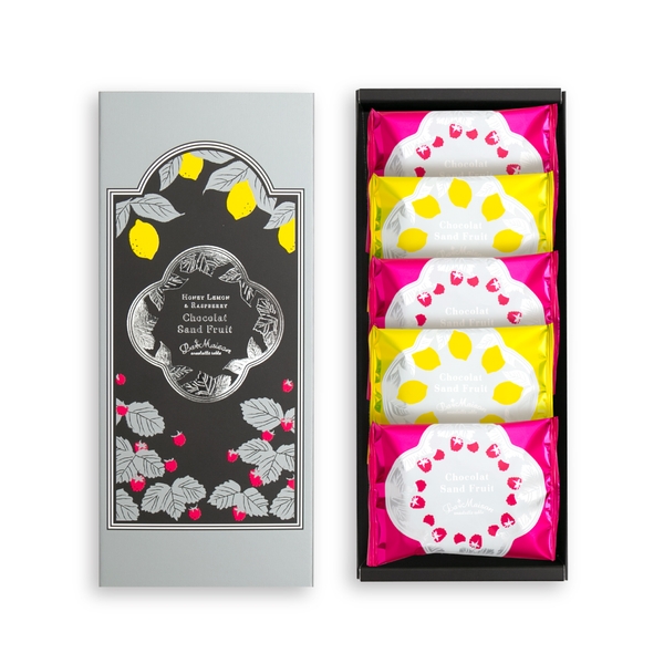 アーモンドの風味と粗挽きの小麦粉を使用したサクサク食感のクッキーに、果実を入れた焼きショコラをサンド。軽やかな食感と爽やかな風味が特徴です。