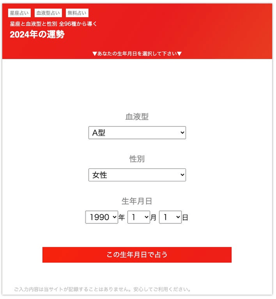 この診断機能を使うことで、ランキング順位を知ることなく、2024年の運勢鑑定を受けることができるようになっています。