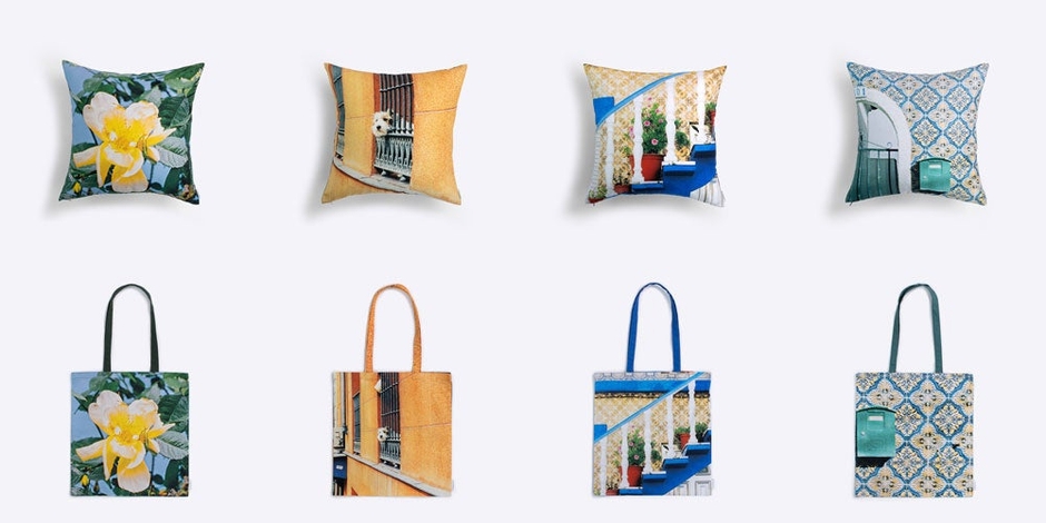 ロンドンやマドリードのどこか懐かしい雰囲気が残るノスタルジックな日常をおさめた、厳選4作品12アイテムを春のインテリアやおでかけに使えるクッションとフラットサブバッグにデザインしました。