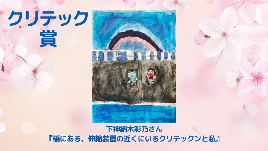「クリテック賞」は、『橋にある、伸縮装置の近くにいるクリテックンと私』を描いた下神納木彩乃さん(小学3年生)が受賞しました。