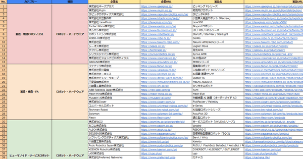 カオスマップを資料請求いただいた方には、製品名や製品URL情報を記載した「フィジカルAIサービス提供企業リスト(Excel)」も併せて無償でご提供いたします。
