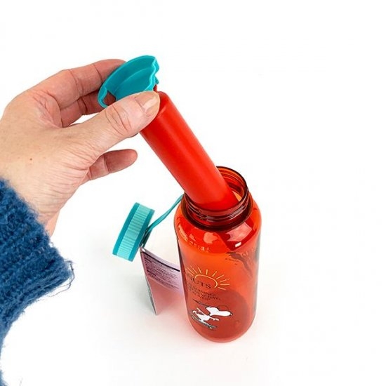 クリアなレッドカラーに、スケボーをするスヌーピー&ウッドストックのデザインのドリンクボトルが登場です。