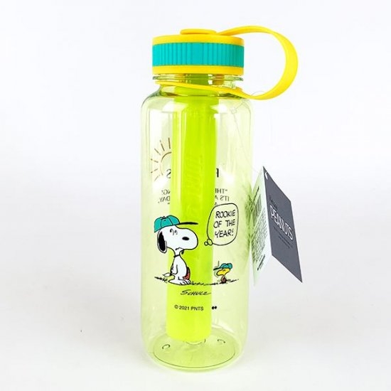 色違いには、イエローのドリンクボトルがあります。こちらのデザインには、野球をするスヌーピー&ウッドストックが描かれていますよ。