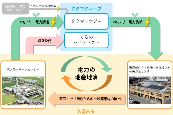 廃棄物やバイオマス由来の電力を地域に供給する取り組みは、タクマエナジーでは8件目の実施となります。