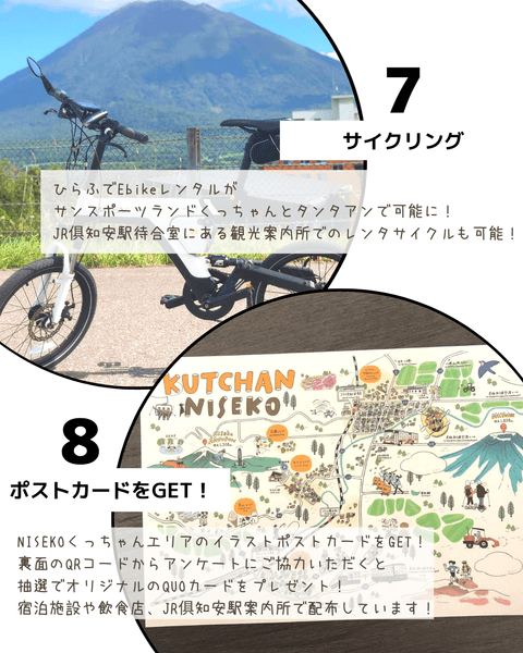 NISEKOくっちゃんエリアのイラストのポストカードを配布しております。(~10/31まで)裏面のQRコードからアンケートにご協力いただくと抽選でオリジナルQUOカードをプレゼントします。