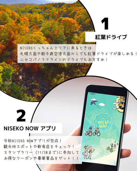 NISEKOくっちゃんエリアへの道中や来てから楽しめるおすすめの紅葉スポットをご紹介します。