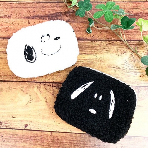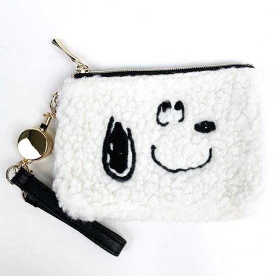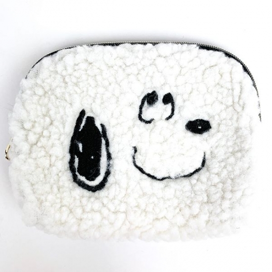 スヌーピーのフェイスシリーズのポーチやパスケース、トートバッグが、もこもこのボア素材で仲間入り♪