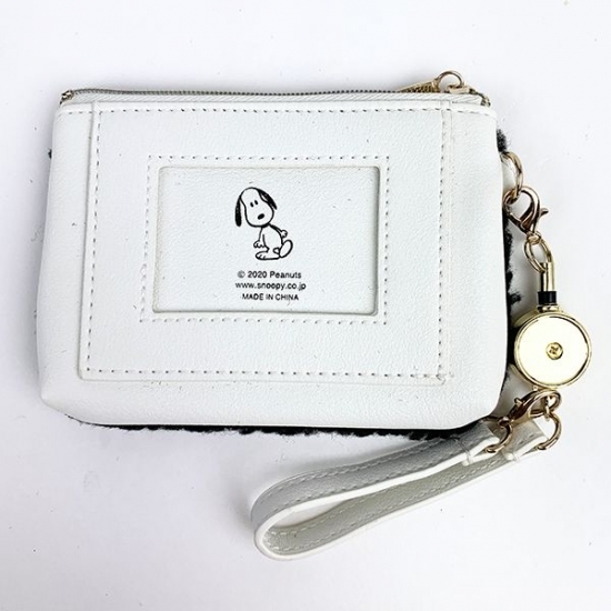もこもこで気持ちいい素材感に、スヌーピーの愛嬌のあるお顔がとってもかわいいですよね。リール付きのストラップも付属しているので、機能的♪