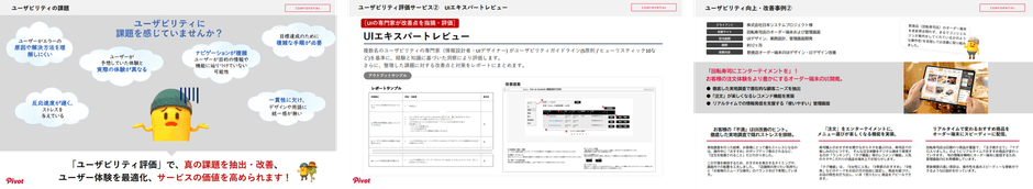 株式会社PIVOT(URL: https://pivot.jp/ 所在地:東京都港区、代表取締役社長:宮嵜 泰成)では、事業目標や利用者、利用シーンを整理したうえで課題を可視化し、確実な改善につなげる「ユーザビリティ評価」を提供しています。