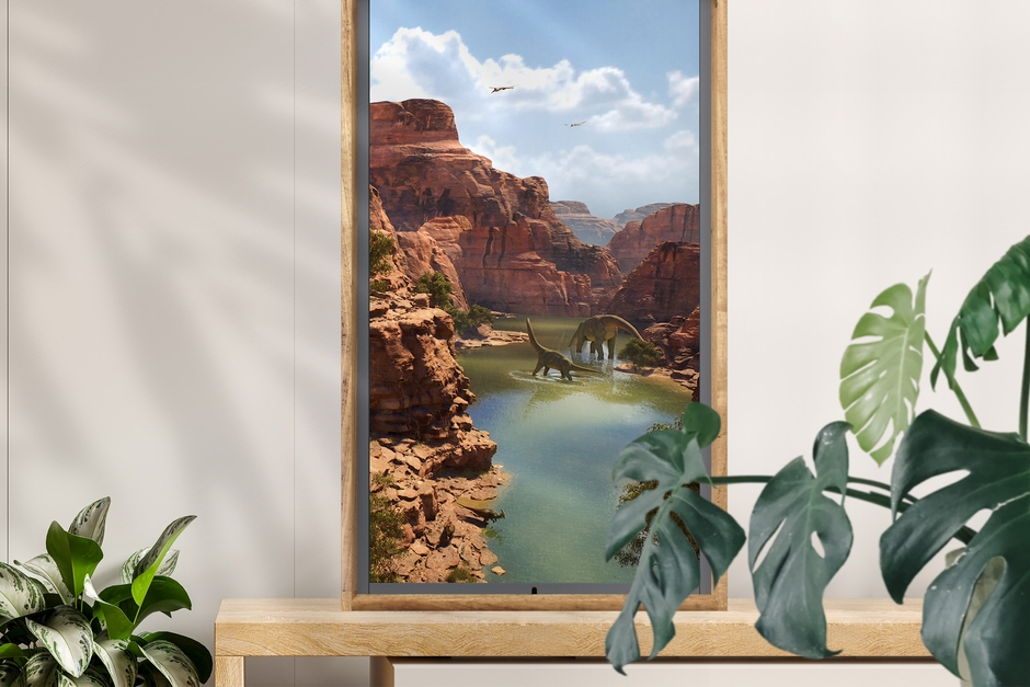 Atmoph Window 2で白亜紀にタイムスリップ。恐竜たちが、AtmophのCGで蘇ります