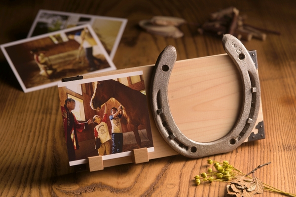 馬と触れ合い、子どもの成長を後押しするプログラムです。大きな馬のお世話に挑戦し、動物への思いやりを育み、ひとまわり成長できます。2日間に分けてたっぷり触れ合え、1日目は馬の生態や歴史を学ぶ勉強会、馬のお世話、自分がお世話した馬が実際に使っていた蹄鉄(ていてつ)(*2)を装飾し、写真立てを作る3つの体験をします。2日目は、馬が快適に過ごすにはどうしたらいいか考えながら、厩舎(きゅうしゃ)内の清掃や放牧をします。