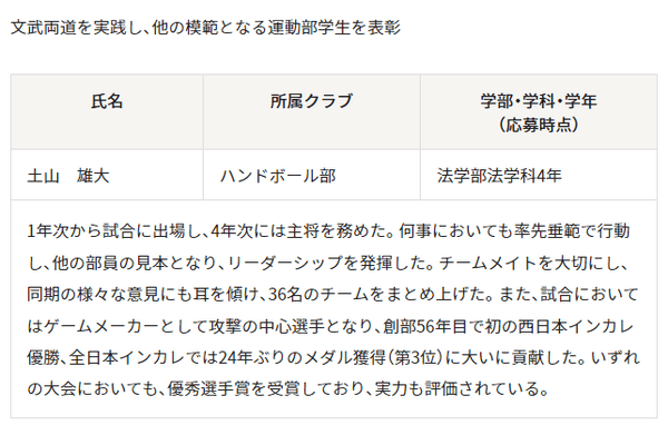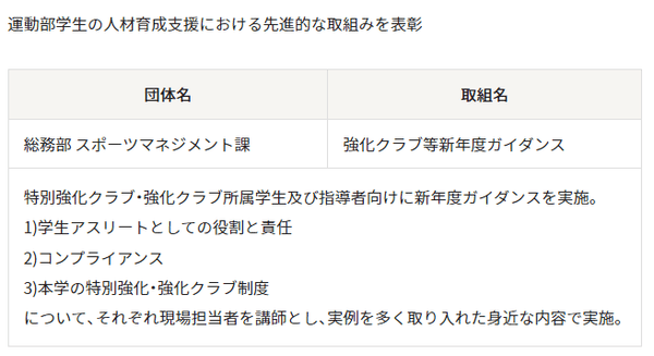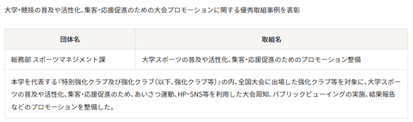 2023年2月16日 07:30一般社団法人大学スポーツ協会「UNIVAS(ユニバス)」が主催する『UNIVAS AWARDS 2022-23』において、3年連続、本学及び本学学生が〈優秀賞〉〈入賞〉を受賞しました。