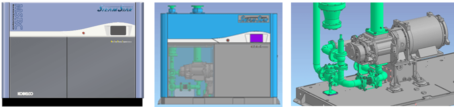 本システムで用いる中圧蒸気圧縮機は、コベルコ・コンプレッサ製「スクリュ式小型蒸気圧縮機MSRC」の採用を前提としております。