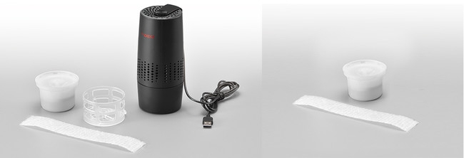 本体に付属の除菌消臭カートリッジから二酸化塩素ガスが発生。サーキュレーターから発生した風により車内にスピード拡散します。