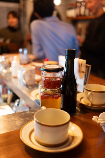 「喫茶くこ」は、美と健康をテーマにした、心と体が癒されるカフェです。店名の由来となった「くこ(クコの実/ゴジベリー)」は、古くは楊貴妃も愛したとされるスーパーフード。このカフェを訪れたお客様が、クコの実のようにエネルギーをチャージし、明日への活力を養える場所にしたいという想いを込めて名付けました。