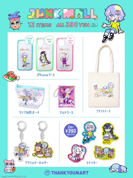 Twitterフォロワー約28万の「さくしゃ2」をはじめ、イラストレーター「寺田てら」と「東宝」が共同開発したIP「ジャンクモール」。オタク女子ステッカーが話題となり入荷即完売の人気イラストレーター「フォーティーン」の雑貨アイテムを展開。