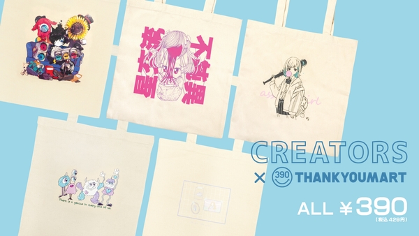 カワイイが集まる店内全品390円(税込429円)のショップ「サンキューマート」を運営するエルソニック株式会社は、総勢8作家に及ぶクリエイターとのコラボ商品「秋のクリエイターコラボフェス」を発表いたします。全4企画のコラボアイテムを9月7日(火)より順次販売開始いたします。