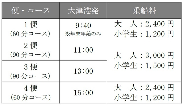 冬期クルーズの運航ダイヤについては次頁の通りです。