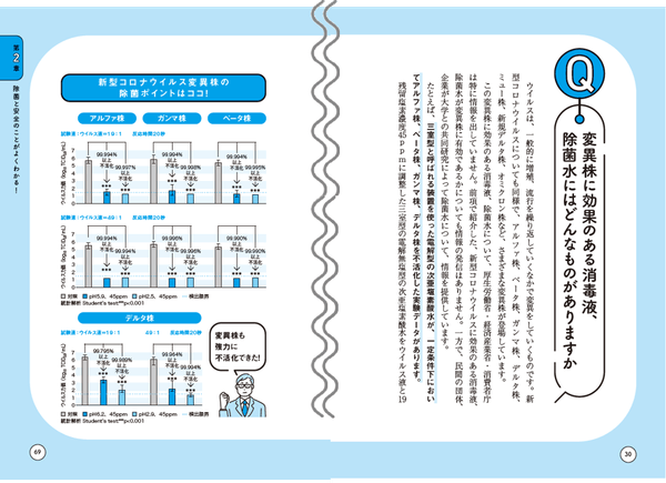 「消毒液と除菌水は何が違う?」「消毒液と除菌水のラベルはどこを見ればいい?」「変異株に有効な消毒液と除菌水は?」など、新型コロナウイルスの流行で一気に関心が高まった消毒・除菌についての最新知識を、イラスト等を使ってわかりやすく図解。第6波到来の前に身につけたい知識満載。