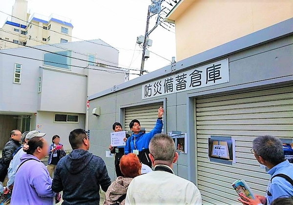 地域の防災備蓄倉庫を説明する様子(すみだの巣づくりプロジェクトHPより)