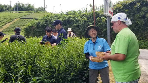 写真(下):6月1日(事前着手) サイクリングコースやポイントづくりの下見。食文化理解のため、うえだブルーベリー畑にヒアリング。