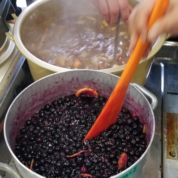 12月はやまなみホールを発着として恋志谷神社や恋路橋、道の駅、道の駅でも販売している美味しいパン屋さんを巡るコースとなりました。また12月はブルーベリージャムづくりやジビエカレー、原木シイタケのBBQ、お茶を使ったお菓子クッキーなど地元の特産物を味覚で感じてもらう体験も取り入れました。こうした食文化体験は昨年度も実施ており、2018年からのプロジェクトメンバーである西岡ゆかり先生(管理栄養士、現在は本学非常勤)が学生の要望を聞きながらプログラムに応じてつくってくださっています。