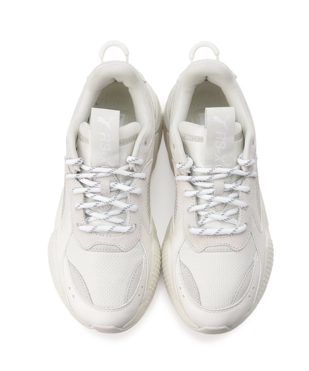 RS-Xは、未来をイメージして過去のデザインを活かしたスタイルで、オリジナルの大胆なシルエットを更に立体的なルックス、そして耐久性のあるものへ変更し、アッパーの異素材の組み合わせが特徴です。