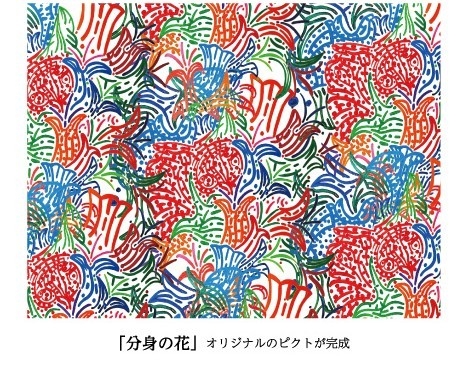 1988年・大阪生まれ。信谷弘光さんは自閉症の男性です。彼の作品の特徴は細いペンを使って緻密な幾何学模様を描くことです。おもに魚や鳥などのモチーフを得意としますが、抽象形態の本作に魅了されたデザイナーが原画をデジタル加工すると、不思議なことに迷宮のような柄がきちんと繋がり、繰り返して使えるようになったのです。