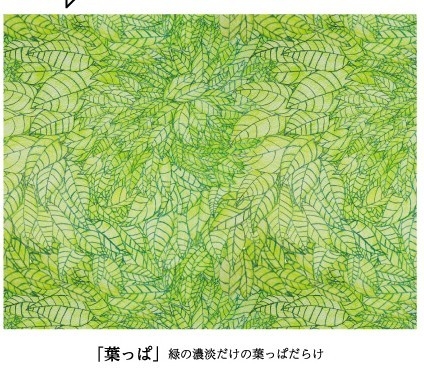 1985年・大阪生まれ。正田さんは知的障がいのある女性です。ペンと色鉛筆で描かれたこの葉っぱの絵は、大好きなお父さんの誕生日プレゼント用に描いた作品です。時々描くアクリル画と同様に彼女自身のシリーズ作品となりました。思いやりが溢れるこの作品は和やかに自然と調和し、商業デザインの分野に於いても非常に汎用性の高いものに仕上がっています。
