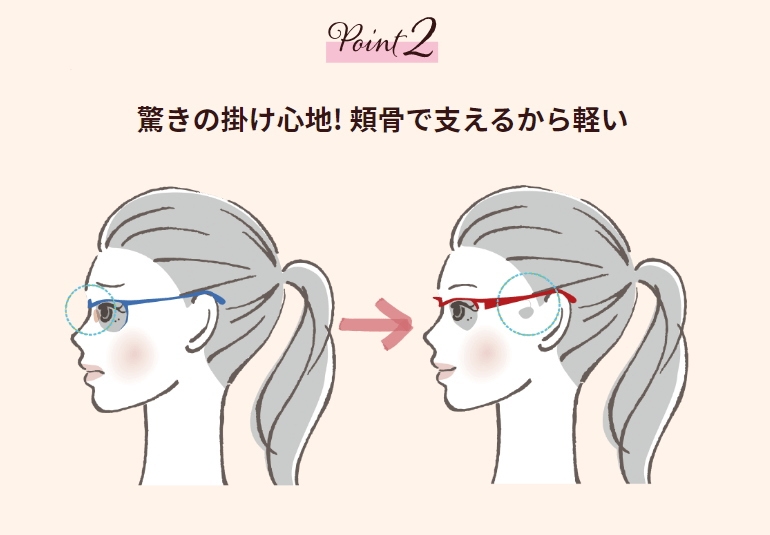 特徴2 驚きの掛け心地! 頬骨で支えるから軽い