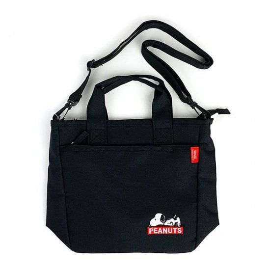 寝そべりデザインのスヌーピーがキュートな、ボトルインショルダーバッグが登場です。クールでベーシックなブラックのボディで、帆布素材のオシャレなバッグ♪持ち手とショルダーベルトが付いているので、2EAYで使用できちゃいます。