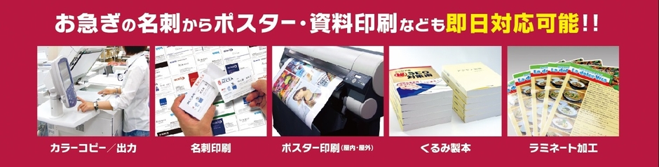 情報収集に役立つ書店としての機能と即日の仕上がりも可能な迅速で幅広いプリントサービスで、地域のみなさまのビジネスをサポートいたします。