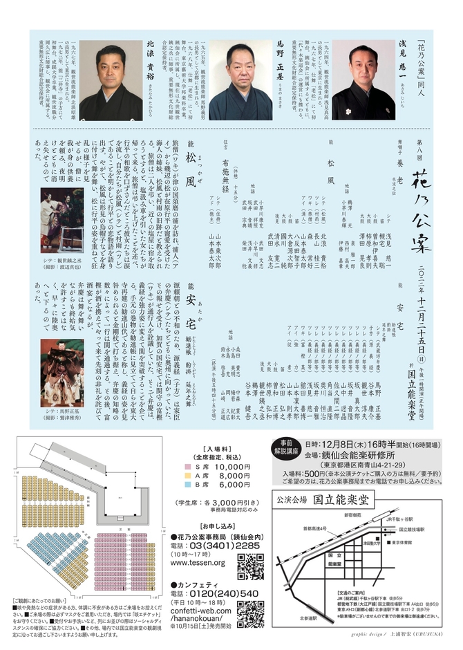 観世流能楽師3名による花乃公案 第8回公演開催決定 上演は名曲「松風」・人気曲「安宅」など カンフェティでチケット発売