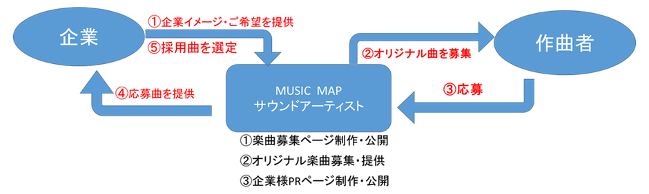 当サイト上で企業様向けのイメージに合った音楽やテーマソング、動画用、ホームページ用などのオリジナル曲を募集させていただきます!