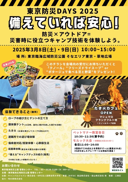 備えていれば安心!「防災×アウトドア」で学ぶ2日間。東京臨海広域防災公園で「東京防災DAYS2025」3/8(土)・9(日)開催