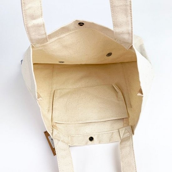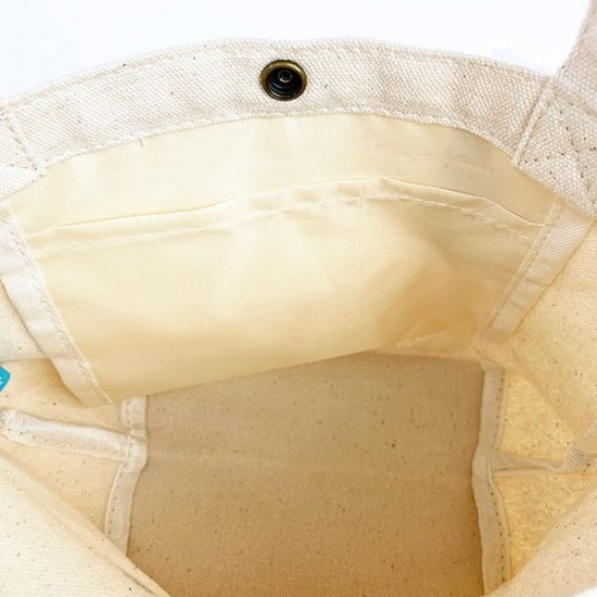 マチも広くポケット付き、スナップボタンで開閉もできるので中身が見えなくて嬉しい仕様です。
