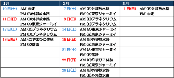 1 主なツアー・イベント内容(HPにて順次公開)
