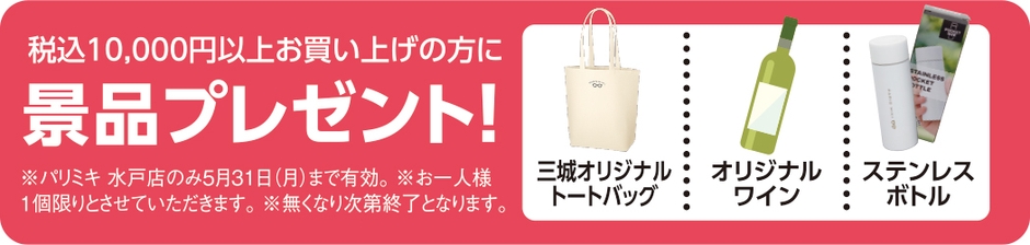 税込10,000円以上お買い上げの方に、ミキオリジナル景品をプレゼントいたします!※無くなり次第終了となります。