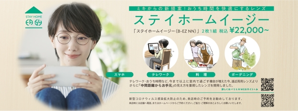 テレワークや、おうちで過ごす機会が増えた今、スマホやお料理など中間からお手元の見え方を快適にサポートする、新・日常レンズ「ステイホームイージー」をミキから提案します。