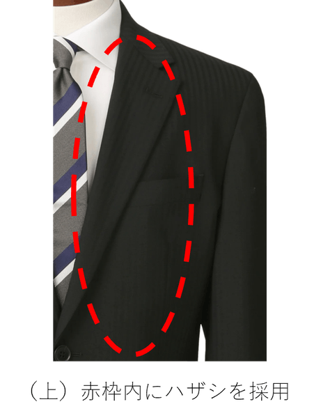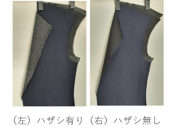 ※1:ハザシとは:表地と芯地をを馴染ませる八の字に縫っていく縫製方法