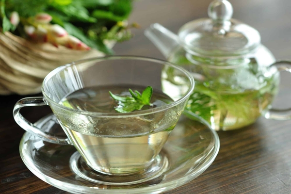 寝室はリビングに比べて天井が低く、落ち着ける空間です。快眠のために整えられた寝室でより深い眠りにつけるよう、日中にはスパトリートメントを受けて花粉症によるストレスを抱えた状態を緩めます。就寝前には心を落ち着けて穏やかに眠れるよう命草茶を飲みます。フーチバ(ヨモギ)やウイキョウなど、施設内で採れる命草を使用した温かいお茶です。気持ちを緩めるような優しい香りが湯気とともに広がり、心身をリラックスさせます。
