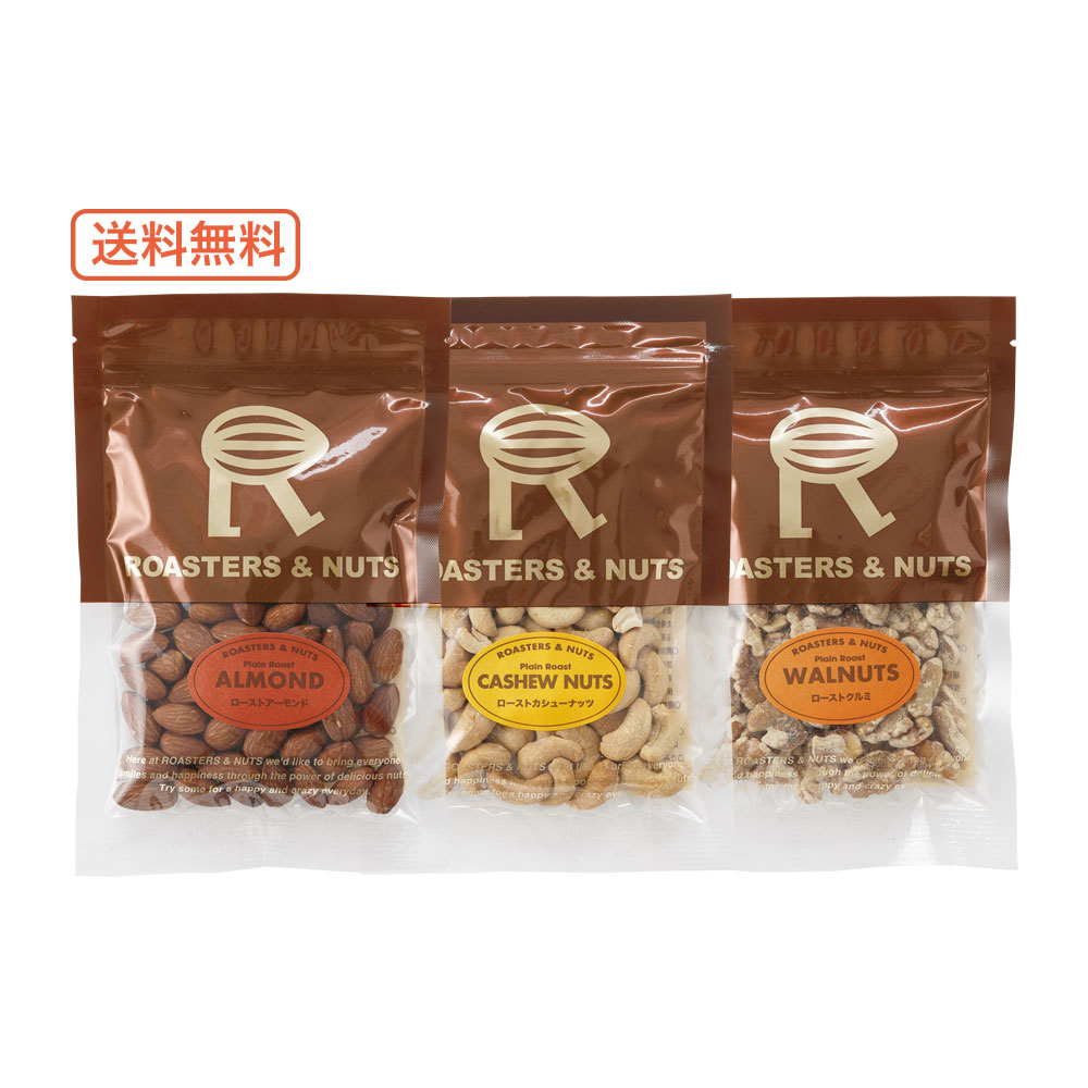 ローストアーモンド95g、ローストクルミ75g、ローストカシューナッツ95g