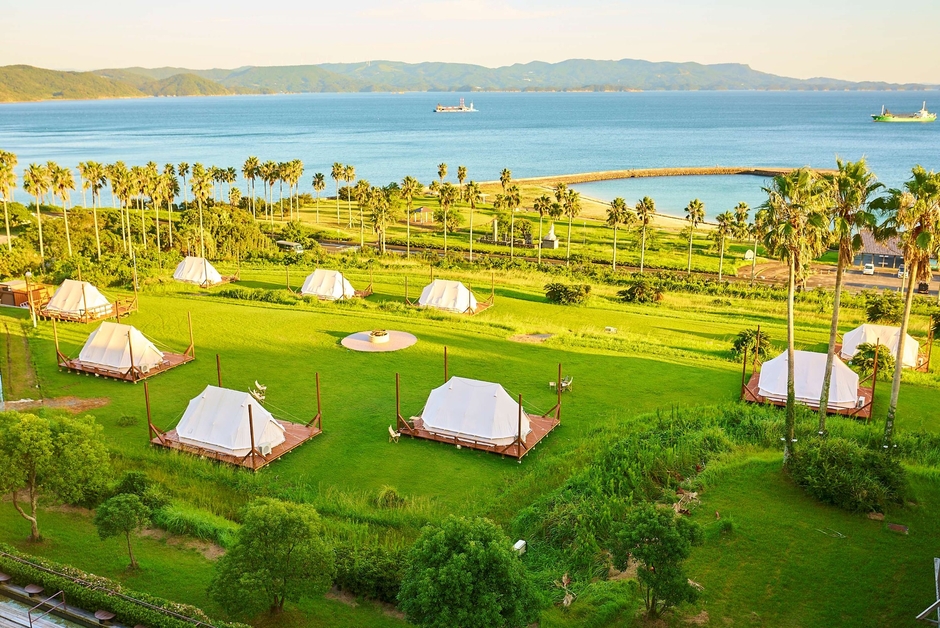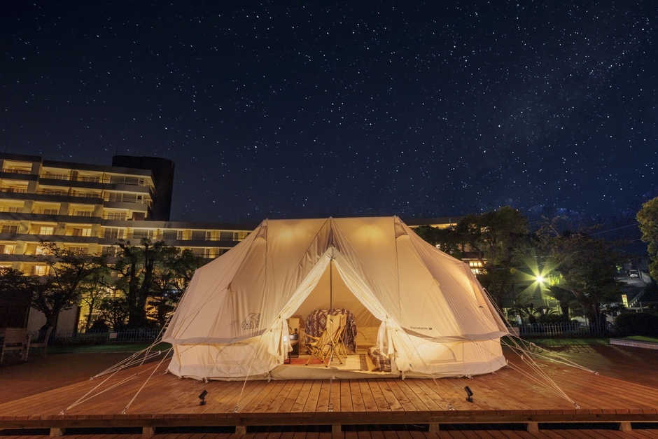 全国71施設のうち、「Premium 青雲閣(福井県)」「志摩彩朝楽(三重県)」「Premium 白浜御苑(和歌山県)」、「ホテル蘭風(長崎県)」の4施設でご用意している「グランピングエリア」の料金を改定し、よりご利用いただきやすくなります。