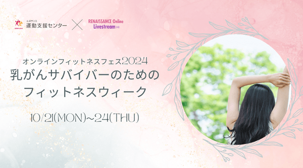 株式会社ルネサンス(代表取締役社長執行役員:岡本 利治、本社:東京都墨田区、以下「当社」)は、10月のピンクリボン運動の強化月間に合わせ、乳がんを経験された方や乳がんの治療に取り組む方に向け、フィットネスを通じて応援するイベント「乳がんサバイバーのためのオンラインフィットネスフェス2024」を開催いたします。